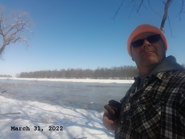 The Red river is just starting to flood it's banks below the farm. The river ice is floating but not completely broken up yet.
