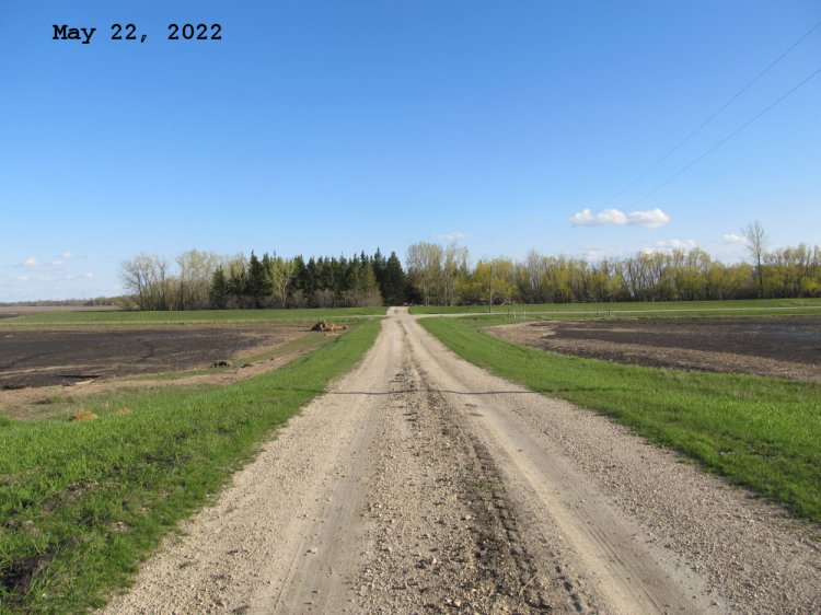 Looking east along our section of Road 27N (Snarr Road) towards the northern Snarr's yard on the left and the southern Snarr's yard on the right. Can see bath tub rings along the road now.