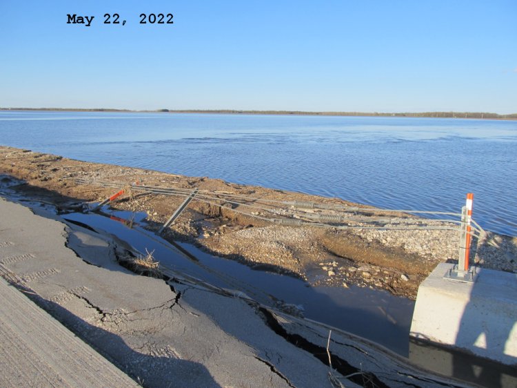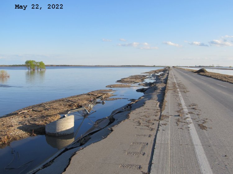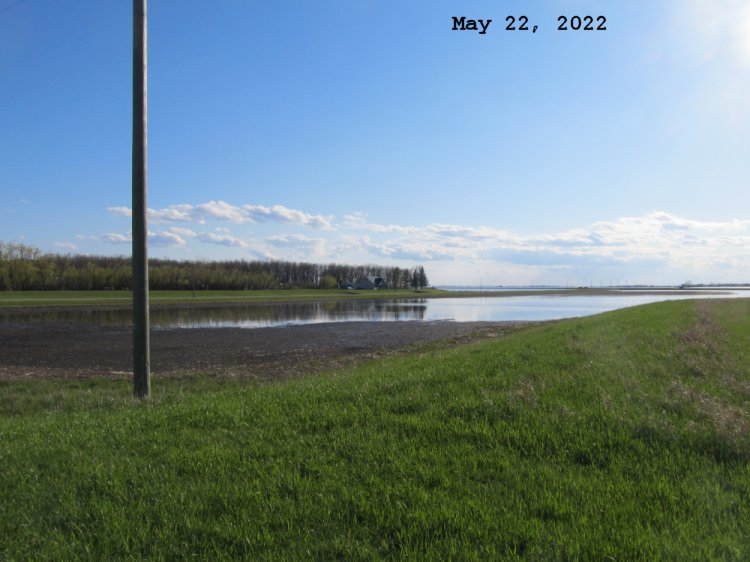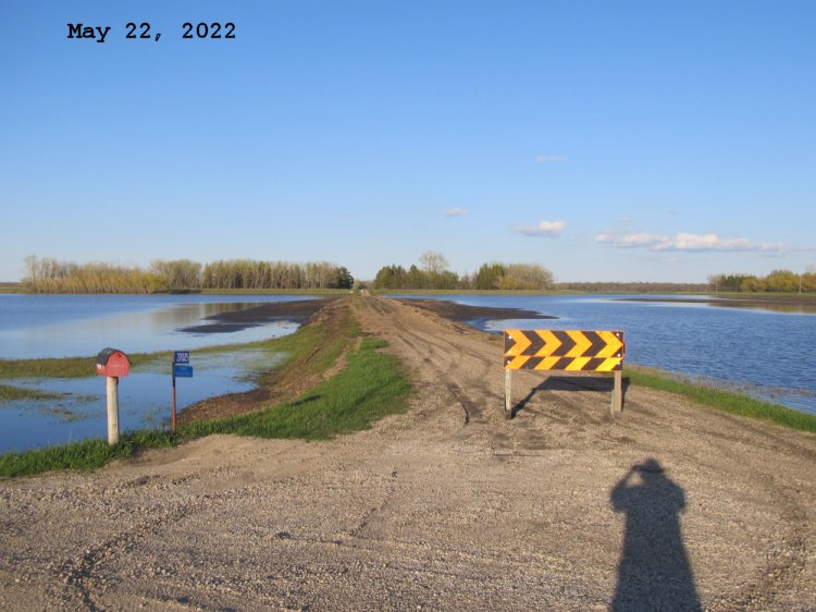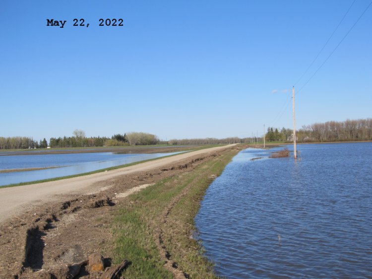 Looking east along our mailbox road from the East service road of Hwy 75. This road on this side of our dike is above water again but needs to work to get it back into shape again.