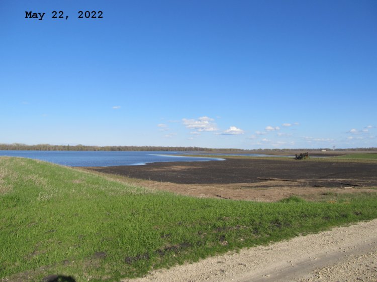 These are our north river lots between Road 29N and 28N. Looking east along our field road or what was our field road. Top part of filed is mostly above water again. Bottom part is still below and will likely be the last to clear of water as it's right next to the Red river at the far tree line.
