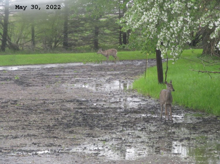 Recent rains have converted my garden back into a puddled mud hole but it never stops the bambi from coming to look for the garden that was not planted this year.